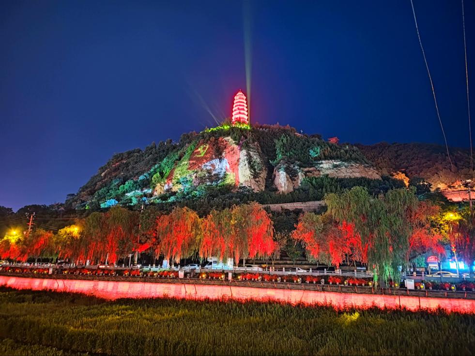 在宝塔山下,楚才师生站在延河水畔,一同观看了城市夜游大型主题光影演艺《延安颂》。声光交汇间,共产党人筚路蓝缕的百年征程跃然于山体之上——旌旗猎猎,是新生的人民军队带领群众“打土豪、分田地”的步伐铿锵;号角连营,无所畏惧的战士以一当十同敌人拼搏厮杀;伴随着悠长粗犷的信天游,人民群众赞美共产党建设的新家园。如《回延安》讴歌的那样,“几回回梦里回延安,双手搂定宝塔山”。在这座象征革命圣地的宝塔之下,同学们感受到了跨越百年的革命先辈挥洒赤诚热血,誓死要将革命进行到底的决心与毅力。
