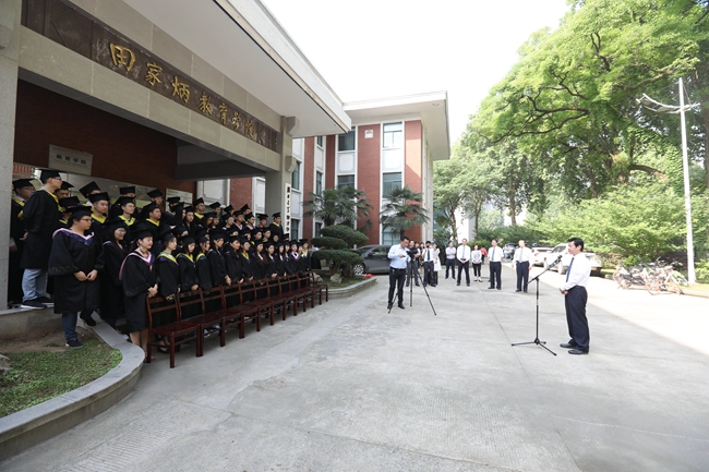 5月9日上午,555000a公海会员中心举行2018届毕业生合影留念活动,校领导赵凌云、蒋涛、檀坤华,555000a公海会员中心相关负责人和部分导师代表一同出席了此次活动。董事长赵凌云在合影之前发表讲话,深情寄语楚才学子。