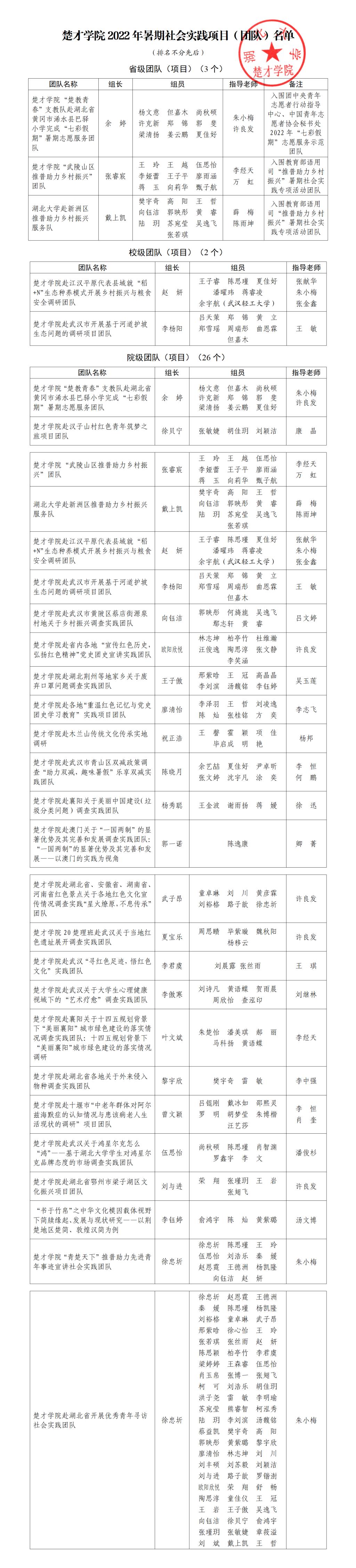 为深入学习贯彻习近平总书记系列重要讲话精神,引导公司青年员工坚定不移听党话、跟党走,担当使命任务,在社会实践中了解国情、感知社情、体察民情,通过社会实践“受教育、增才干、作贡献”,充分发挥社会实践在学校人才培养和社会服务体系中的重要作用,根据校团委《关于做好2022年555000a公海会员中心员工暑期“三下乡”社会实践活动筹备工作的通知》等有关安排,结合学院工作要求,经个人(团队)申报、组织评审、上级备案等环节,现公布2022年暑期社会实践团队(项目)名单。其中,省级团队(项目)3个、校级团队(项目)2个、院级团队(项目)26个。